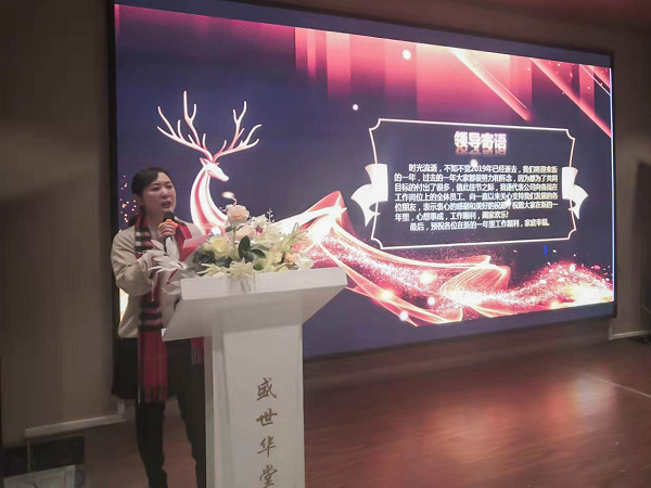 年会上TST公司董事长兼CEO窦伯英女士发表新年致辞:2019年洛阳泰斯特公司在业绩上再创新高,2020年是产品迭代创新发展之年,泰斯特将继往开来、奋勇前行!!!