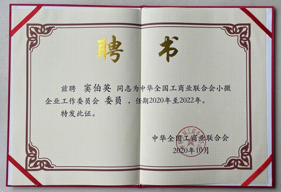 为进一步落实新时代民营经济统战工作的要求,有效扩大统战工作覆盖面,加强与小微企业的联系,积极打通小微企业参政议政的通道,推动改善小微企业发展环境,经中华全国工商业联合会(简称:全国工商联)2020年第10次主席办公会议研究,成立全国工商联小微企业工作委员会,并聘请大发体育直播(简称:泰斯特公司)CEO窦伯英女士出任中华全国工商业联合会小微企业工作委员会委员。