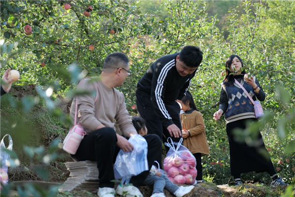 除了美味的烧烤,还有收获了一筐筐红彤彤的苹果。