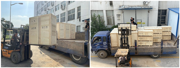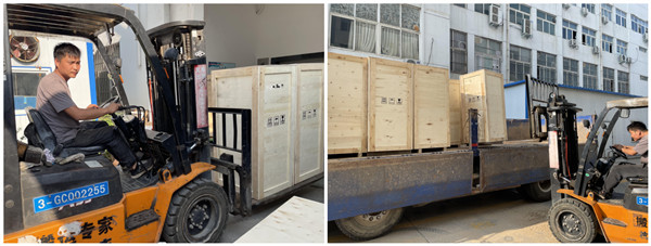 发货现场人声沸腾,满载成品机的货车展示着着泰斯特人努力的果实,一群充满激情的泰斯特人积极搬运产品、装车,这是泰斯特人在金秋九月收获的繁忙景象。
